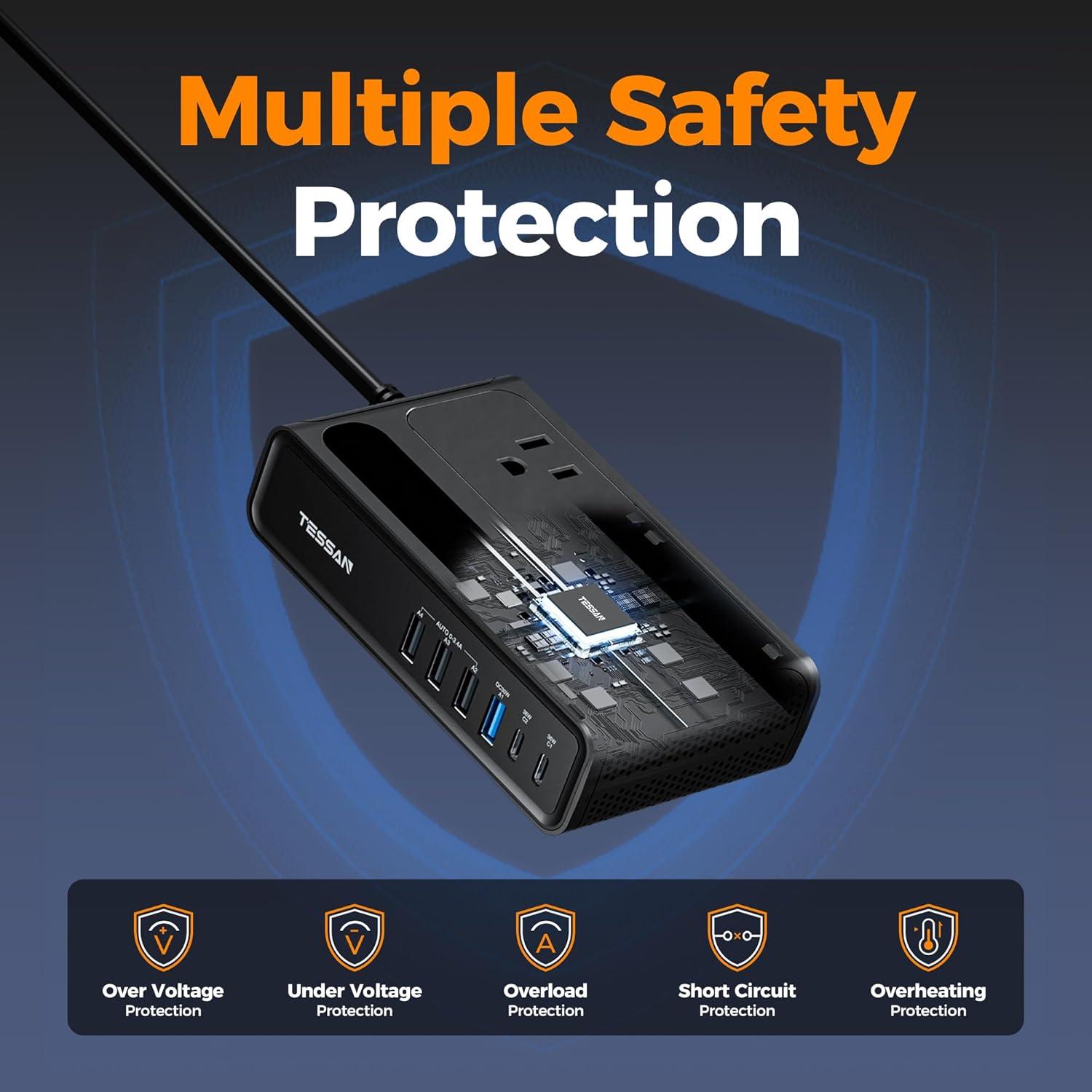Multi-Protection Safety System: Built-in safeguards against short-circuit, over/under voltage, overload, and overheating. Features an on/off switch to control both charging ports, ensuring reliable and secure power for your valuable electronics
