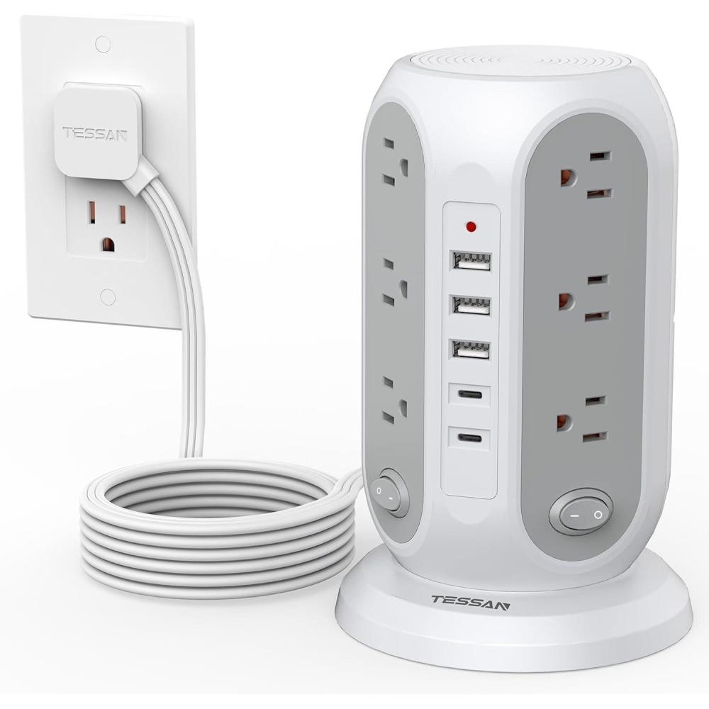 Be the first to review “Black Surge Protector Power Strip with 4 Individual Switches, TESSAN USB C Charging Station Power Tower with Flat Extension Cord 10 Ft, 12 Outlets Black Extension Cord, Dorm Room, Office Accessories(Grey)”