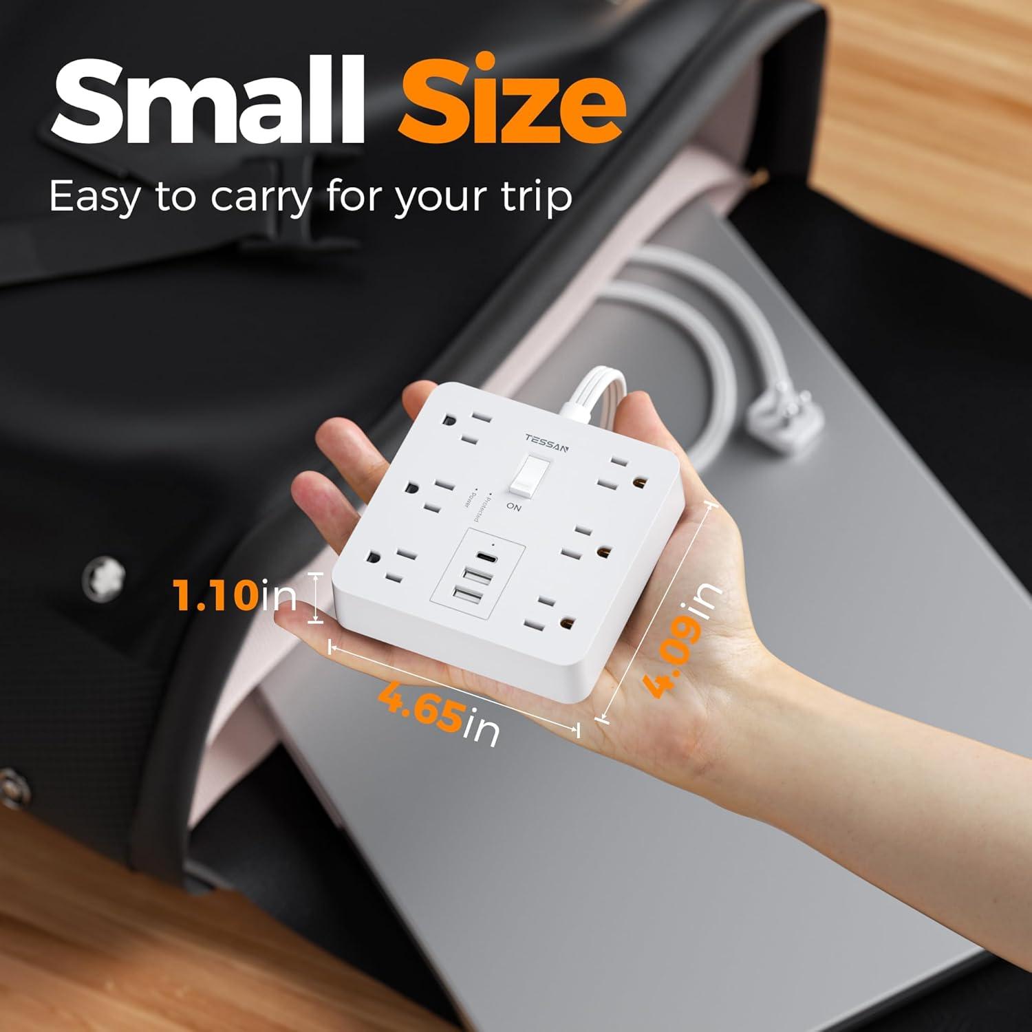 Flat Plug Power Strip Bundle, TESSAN 5 ft Ultra Thin Extension Cord with USB Wall Charger, Slim Desk Charging Station Compact for Travel, Cruise Ship, and Dorm Room Essentials