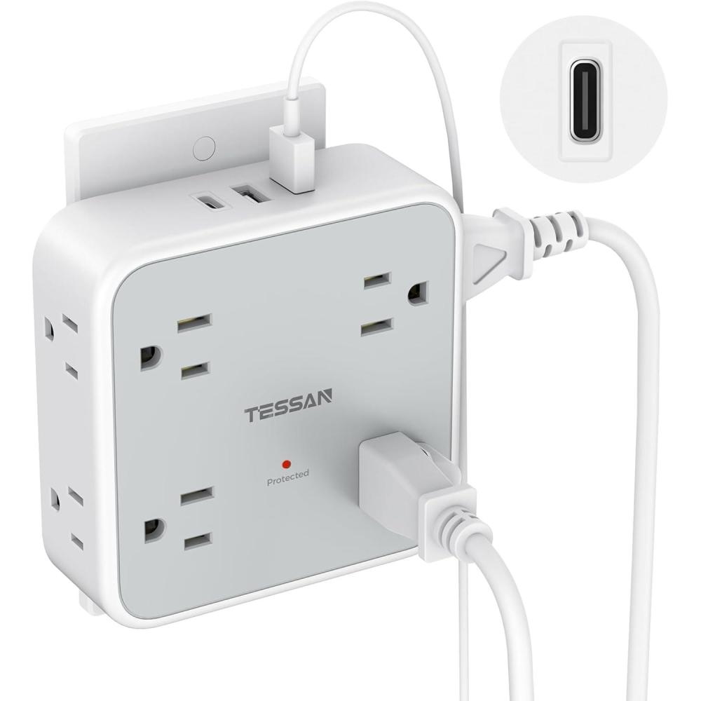 Be the first to review “Multi Plug Outlet Extender, TESSAN Outlet Splitter with 8 Sockets and 3 USB (1 USB C), Wall Surge Protector with Power Switch, 3 Sided Multiple Wall Plug Extender for Home, Dorm Room, Office(White-Grey)”