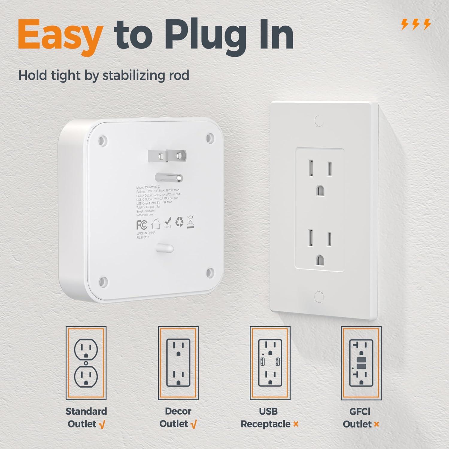 Simple to Install: With stabilizing rod design, it can be fixed firmly to the wall, no more worry about falling off; The plug extender can fit for standard outlet, decorator outlet;(NOTE: Gfic outlet or 2 prong outlet can not compatible this wall plug expander)