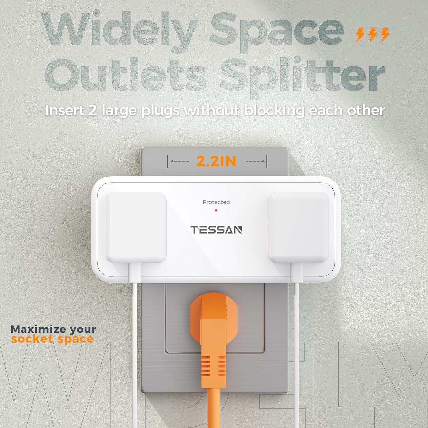 Multi Plug Outlet Splitter, TESSAN 4 Wall Outlet Extender with 3 USB Wall Charger(1 USB C), Surge Protecter 900J, Widely Spaced Multiple Plug Expander(White)