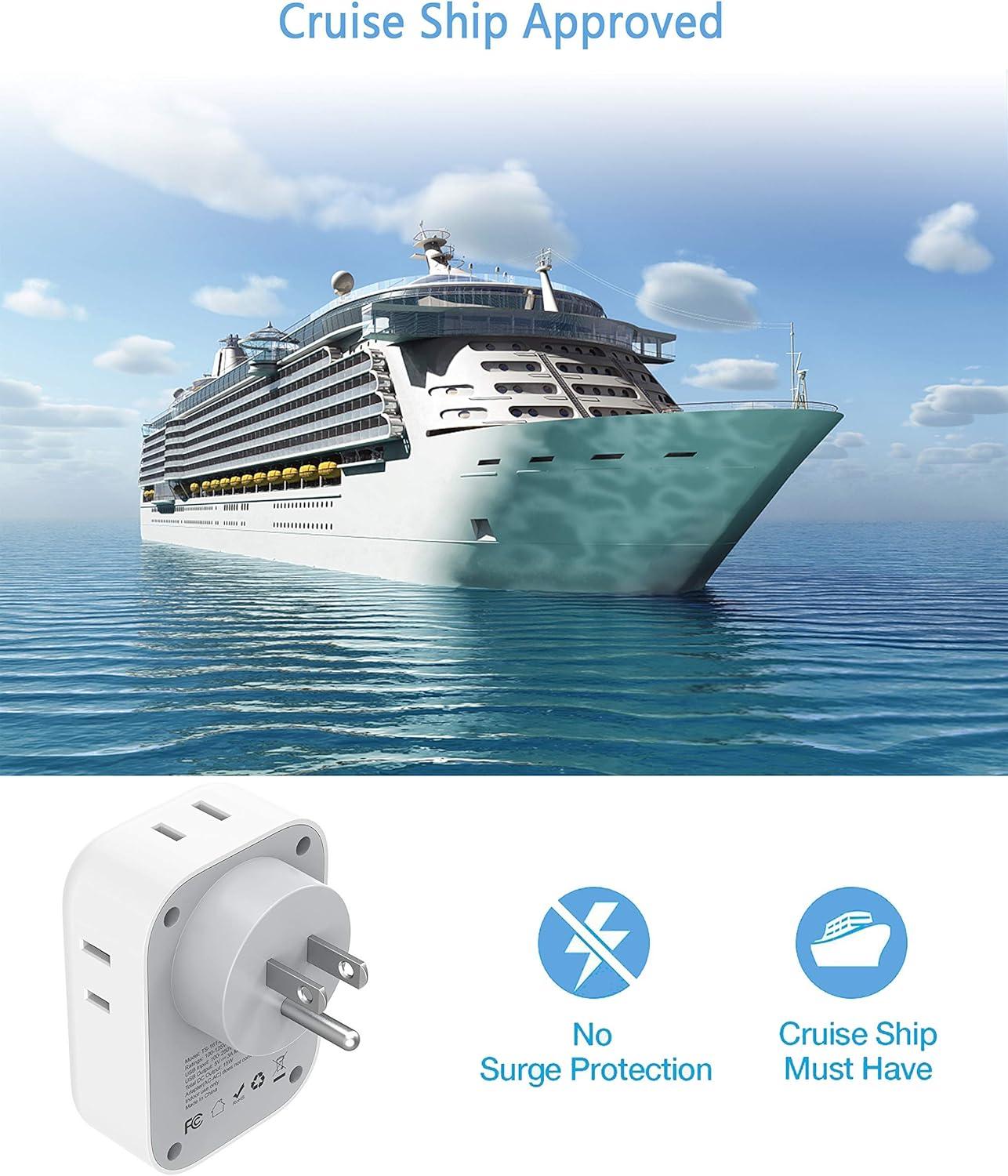 Cruise Accessories: No surge protection, No cords, making plug extender fully cruise ship acceptable; Compact and lightweight design to fit outlet expanders into luggage and briefcases