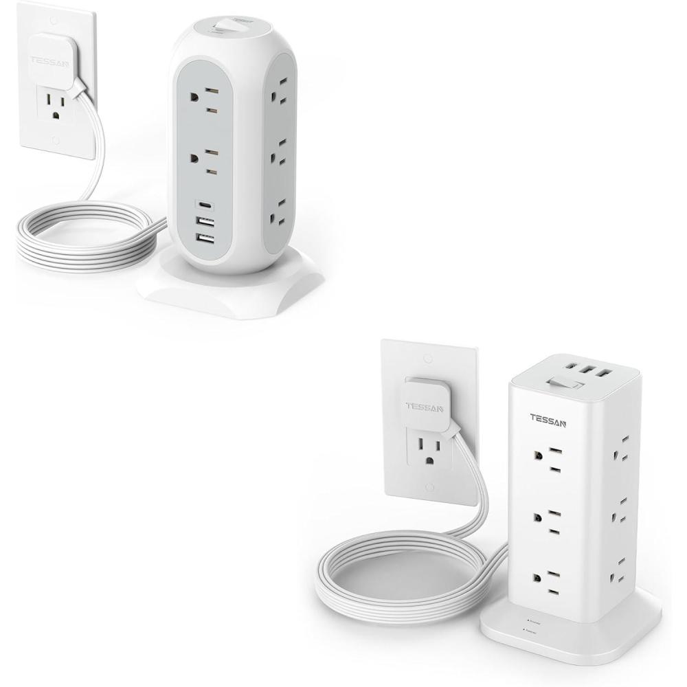 Space Saving Design: 4-side compact design tower power strip takes up little space on your desk, cleans various cords and make your desktop organized; With 4 rubber feet at the bottom, efficiently keeps this 6 ft extension cord from slipping and sliding