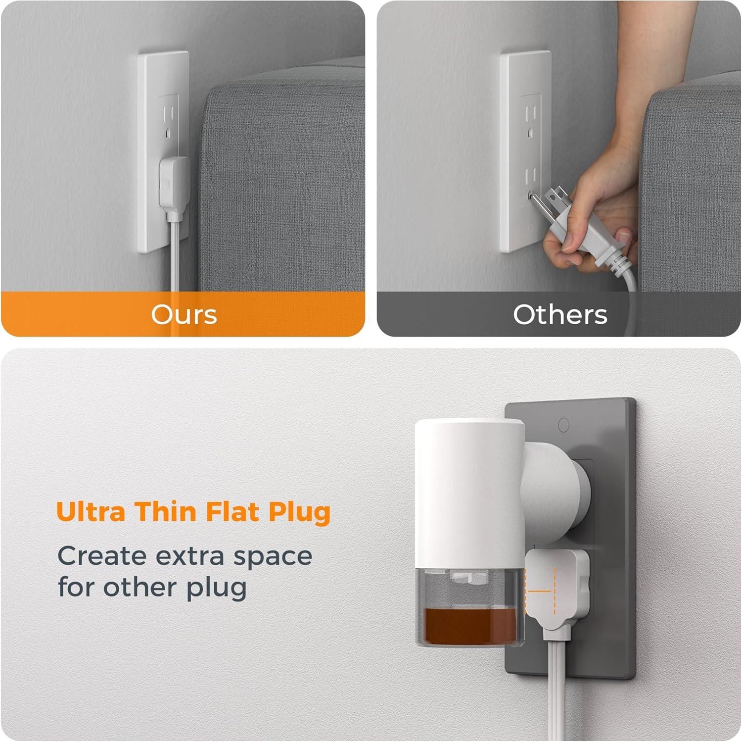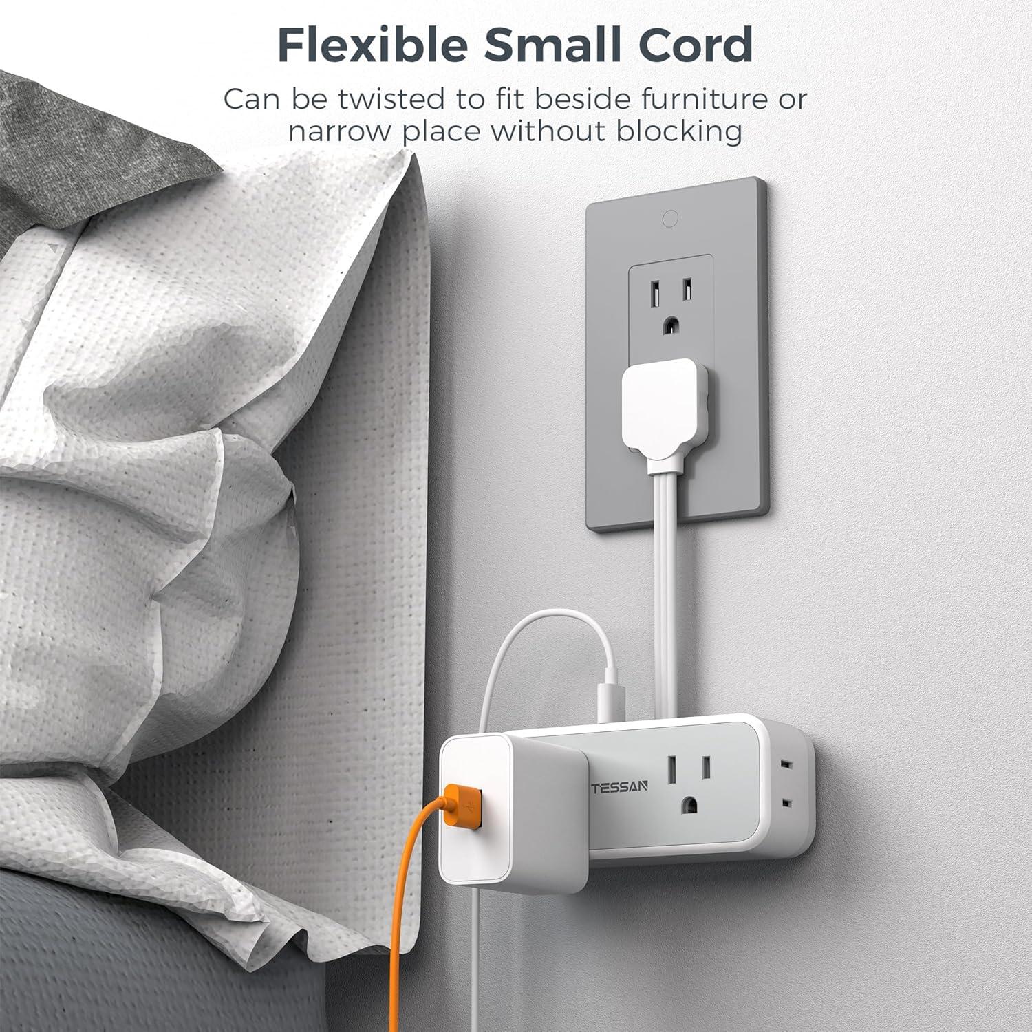 Flat Plug Extension Cord: With 0.33 inch depth ultra thin design, TESSAN extension cord with multiple outlets is thinner than traditional plugs, which can easily fit in tight spots, hide behind desk, sofa, bed, cabinet