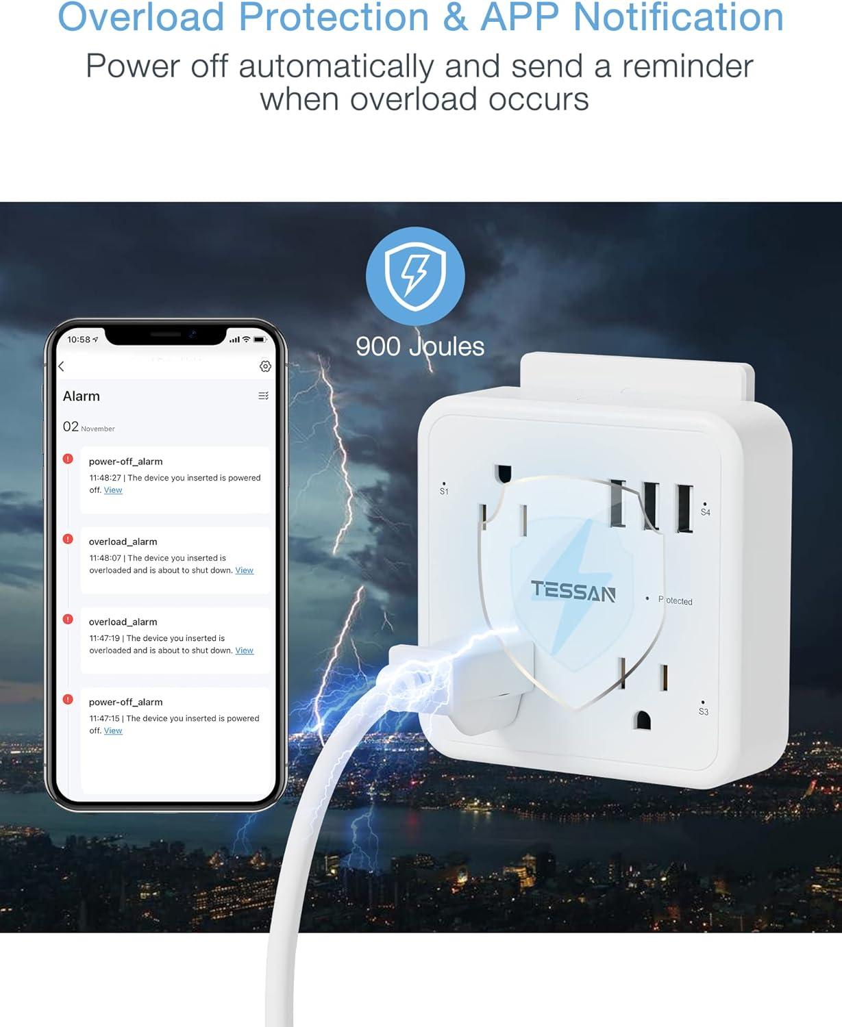 Surge & Overload Protection: The power will be off automatically if overload occurs by the built-in power sensing detection in the smart plug, and a notification will be sent by APP; Also, 900J surge protection protects your expensive electrical appliances at home, office dorm room, etc