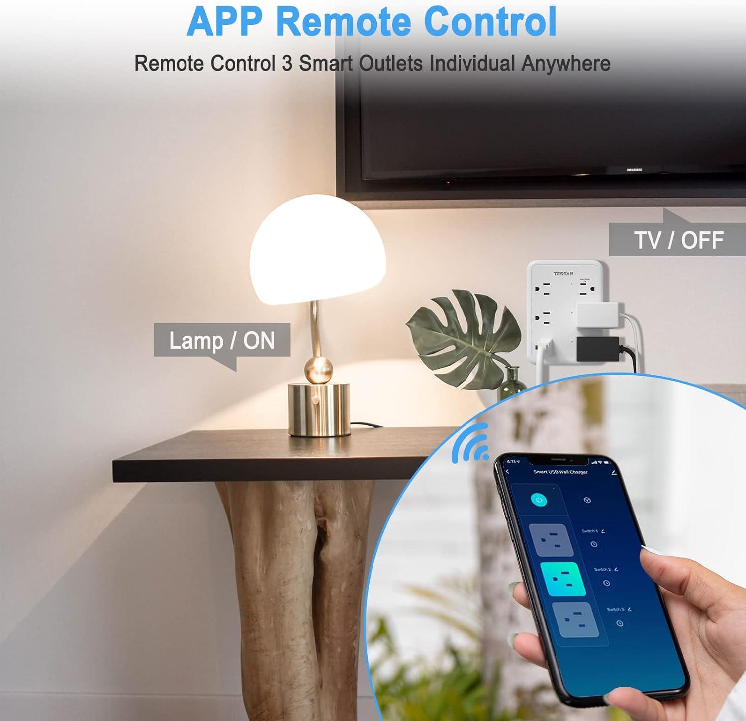 Smart Power Strip, TESSAN WiFi Flat Plug Strip with 3 Smart Outlets and 3 USB Ports, 6 Feet Extension Cord, Only 2.4 GHz Wi-Fi, Compatible with Alexa and Google Home, White(without cord)