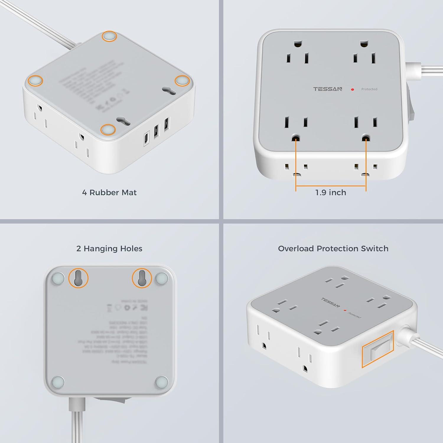 Power Strip with USB C: Dual USB A ports feature 2.4A, the USB C port features 3A; 2 types of USB ports can detect charged devices and deliver optimal charging speed; USB Power Strip giving you more charging options; Applicable to cell phone, earphone, etc