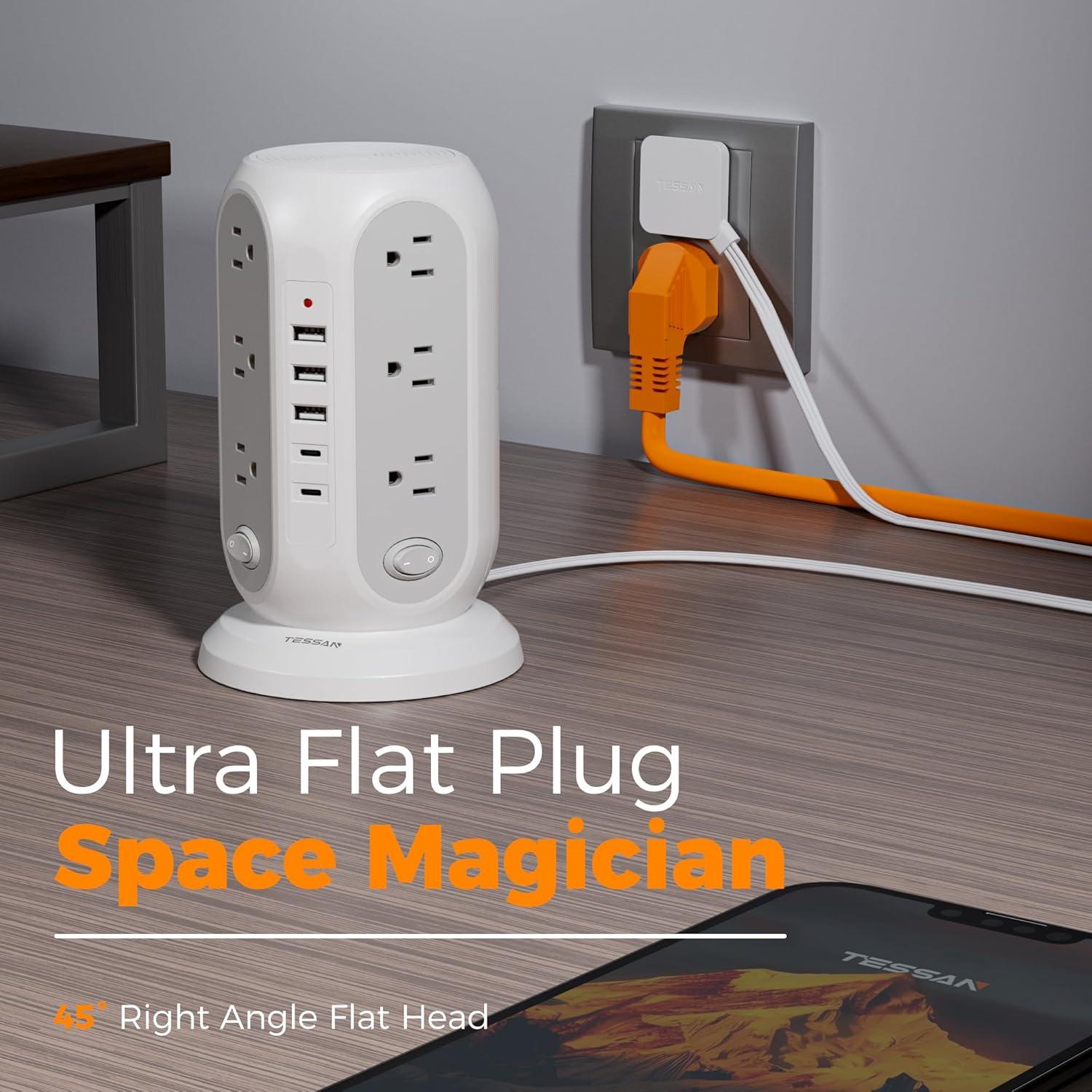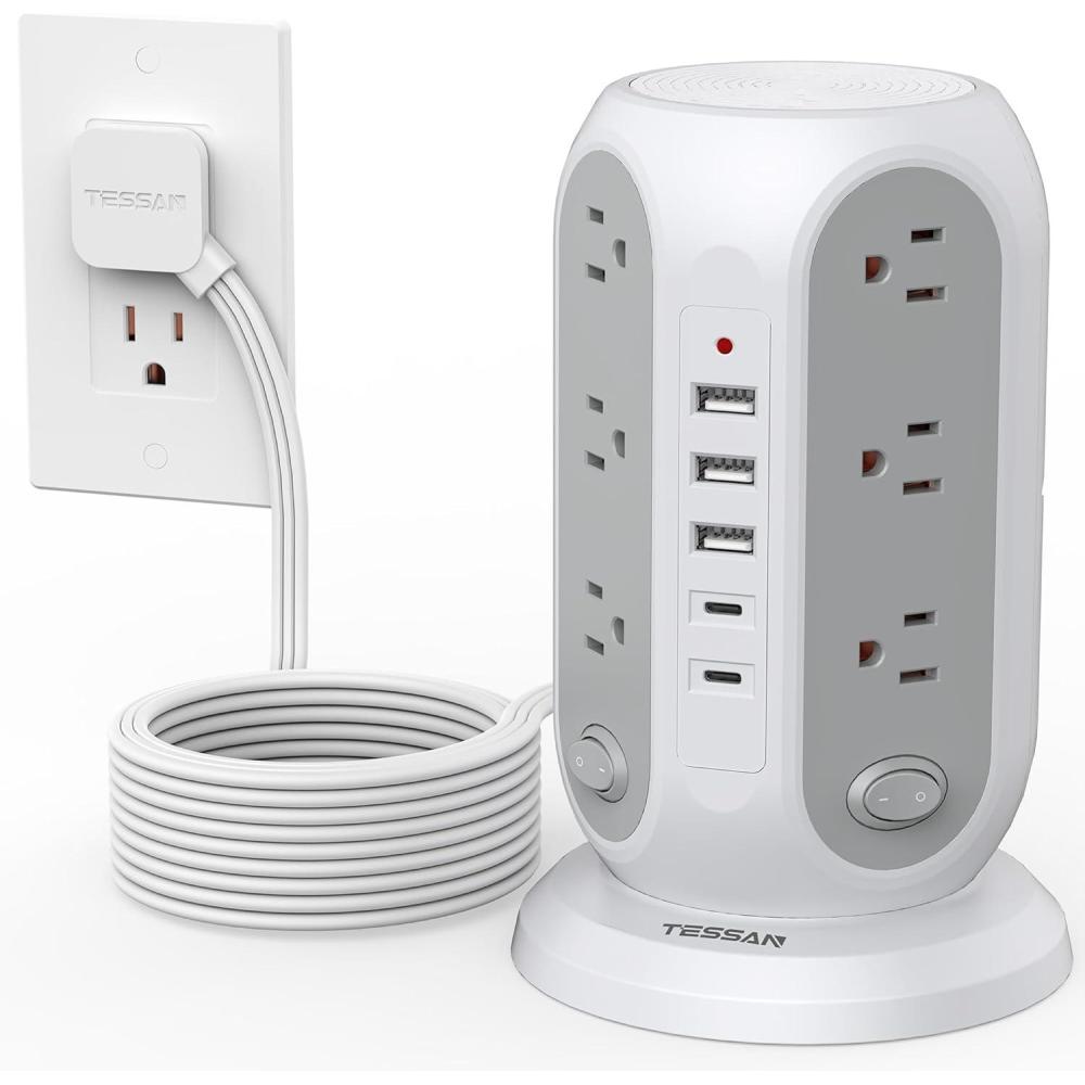 Suitable for Any Occasions: With 4 anti slip rubbers bottom, the 15ft power strip tower can be stable on your desktop or nightstand; The size is 5×5×8 inch, suitable for home, hotel, office, and college dorm room