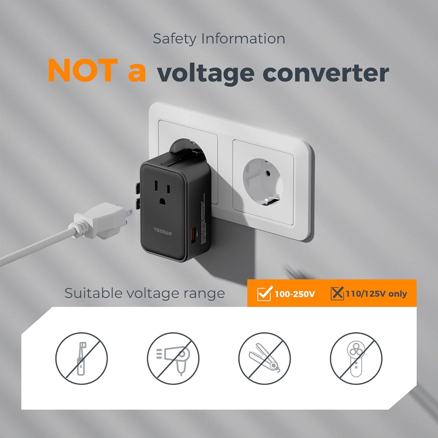 Universal Power Adapter: TESSAN travel adapter covers over 150 countries: Type C for most of Europe Italy, Spain, France, Germany, Thailand; Type G for UK, Ireland, Scotland; Type I for Australia, New Zealand, Fiji, China; Type A for Japan, USA, Mexico