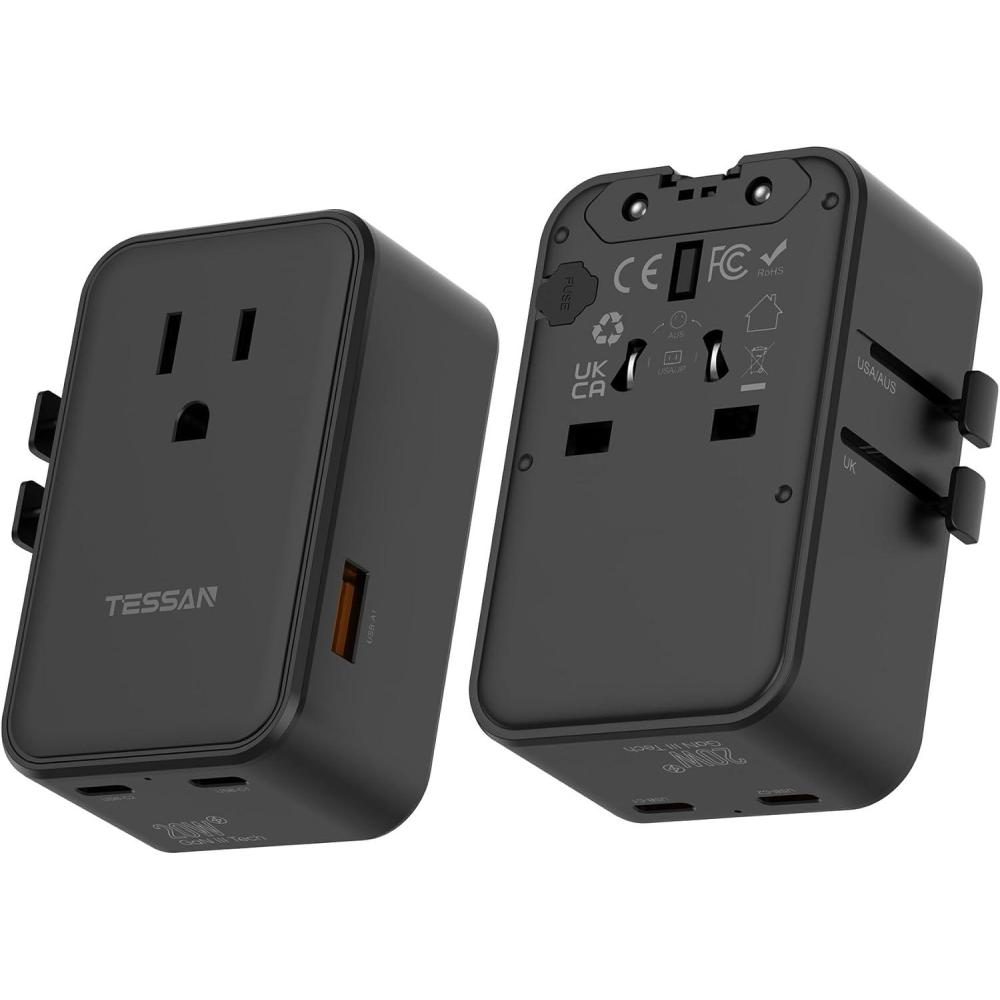 TESSAN 20W International Power Adapter, Ultra Slim Universal Travel Adapter with 2 USB-C 1 USB-A, Travel Adaptor Worldwide Plug for US to European UK Spain England New Zealand (Type C G A I), Black(Black)