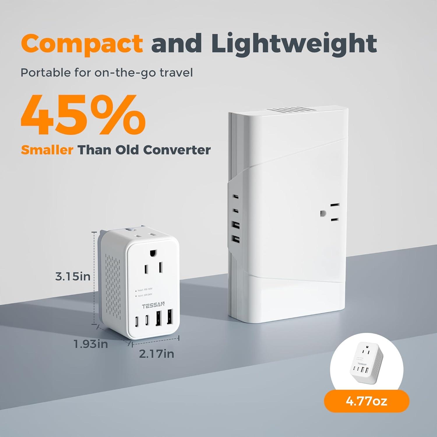 TESSAN 220 to 110 Voltage Converter US to Europe, International Travel Power Adapter with 4 USB Ports(2 USB C), 2 AC and EU/UK/AU Plug Universal Power Converter Adapter Combo, Step Down Transformer