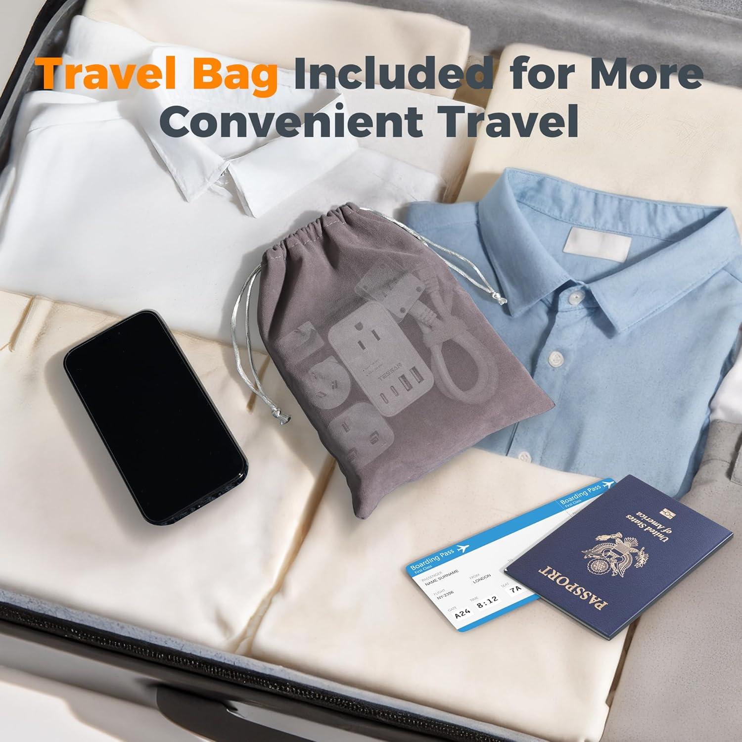 6 in 1 Travel Power Converter: This universal travel voltage converter with 2 AC outlets, 2 USB C (3A Per Port), 2 USB A (2.4A Per Port), total output 17W Max; Charge 6 devices simultaneously, suitable for hair dryers, curling irons, laptops, cameras, etc