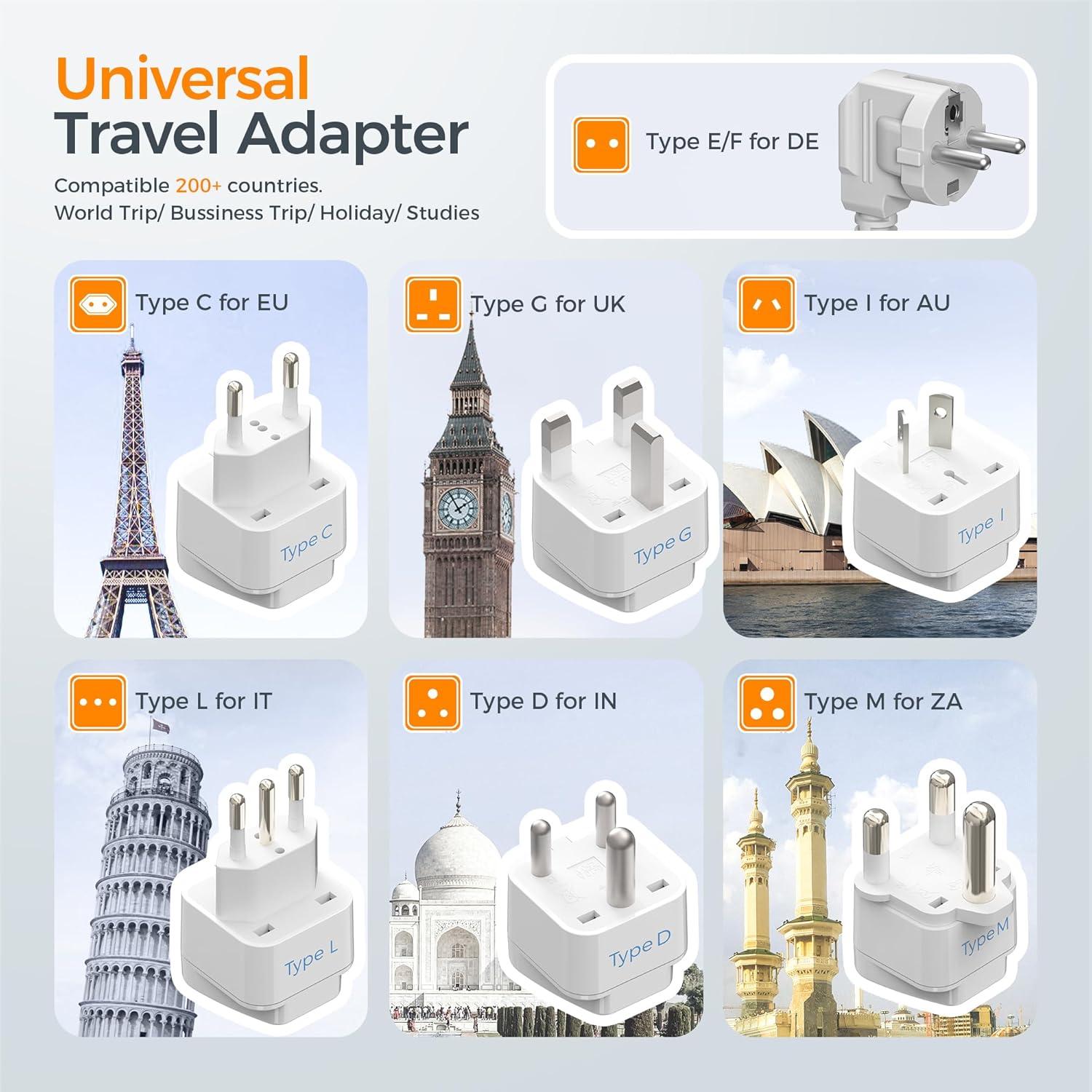 Travel Voltage Converter: The 220V to 110V converter adapter equipped with a DE plug and 6 international adapters (Type C, G, I, L, D, M ), this power converter can works in Europe, UK, Italy, Australia, India, South Africa, Germany, China, Dubai, Greece, New Zealand, etc