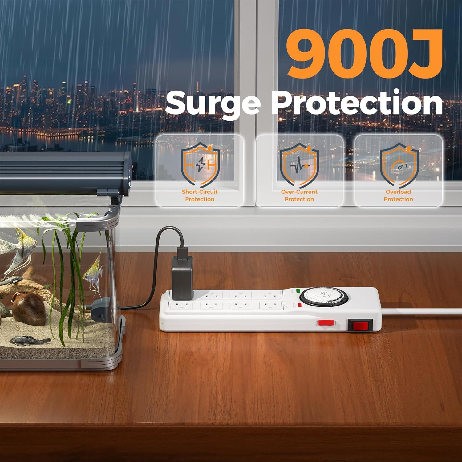 900J Surge Protector: This power strips with surge protection can protect your fish tank lamp aquarium, TV, and other electronices from power surge attacks that might be caused by the storm, providing you with a safe charging environment