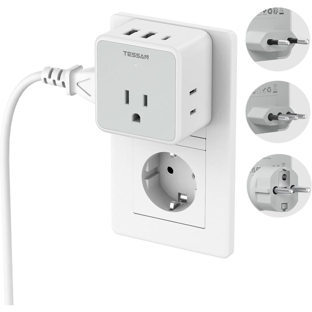 6 in 1 UK Adapters for Travel: This travel adapter worldwide turns Type C G E F socket into 4 AC and 3 USB ports, allows you to charge 6 devices simultaneously without blocking; The European travel plug adapter reduces waiting time and no need to bring extra adapters