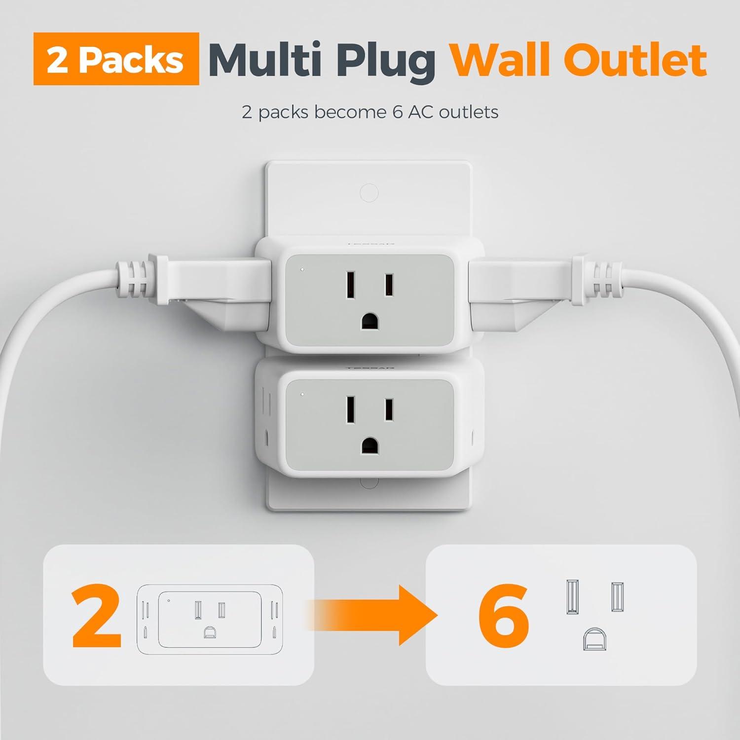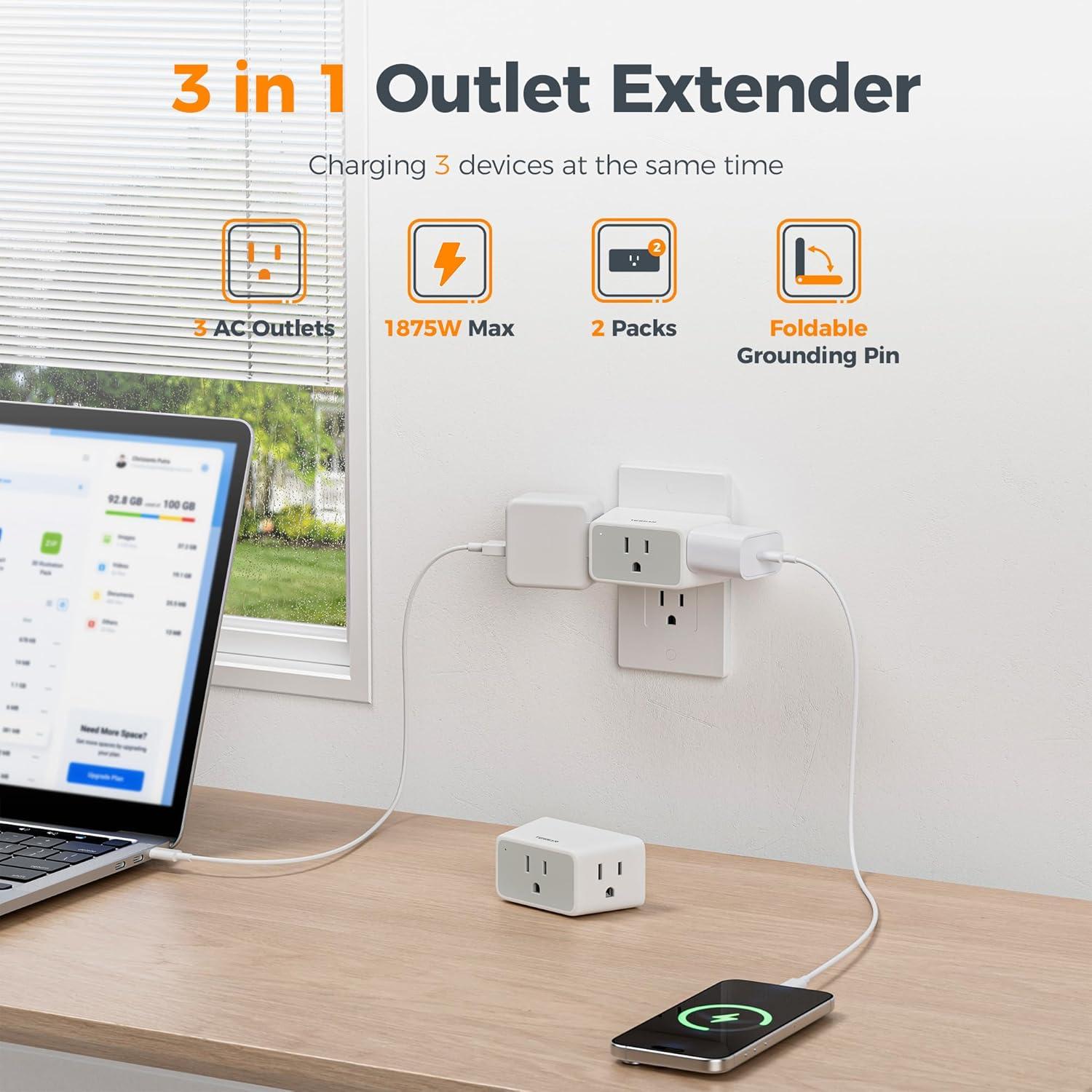 3 in 1 Outlet Splitter: Each multiple outlet wall plug can turn 1 socket into 3 electrical outlets (1875W Max) , allowing the 2-pack set allows you to charge 6 devices simultaneously, reducing your waiting time