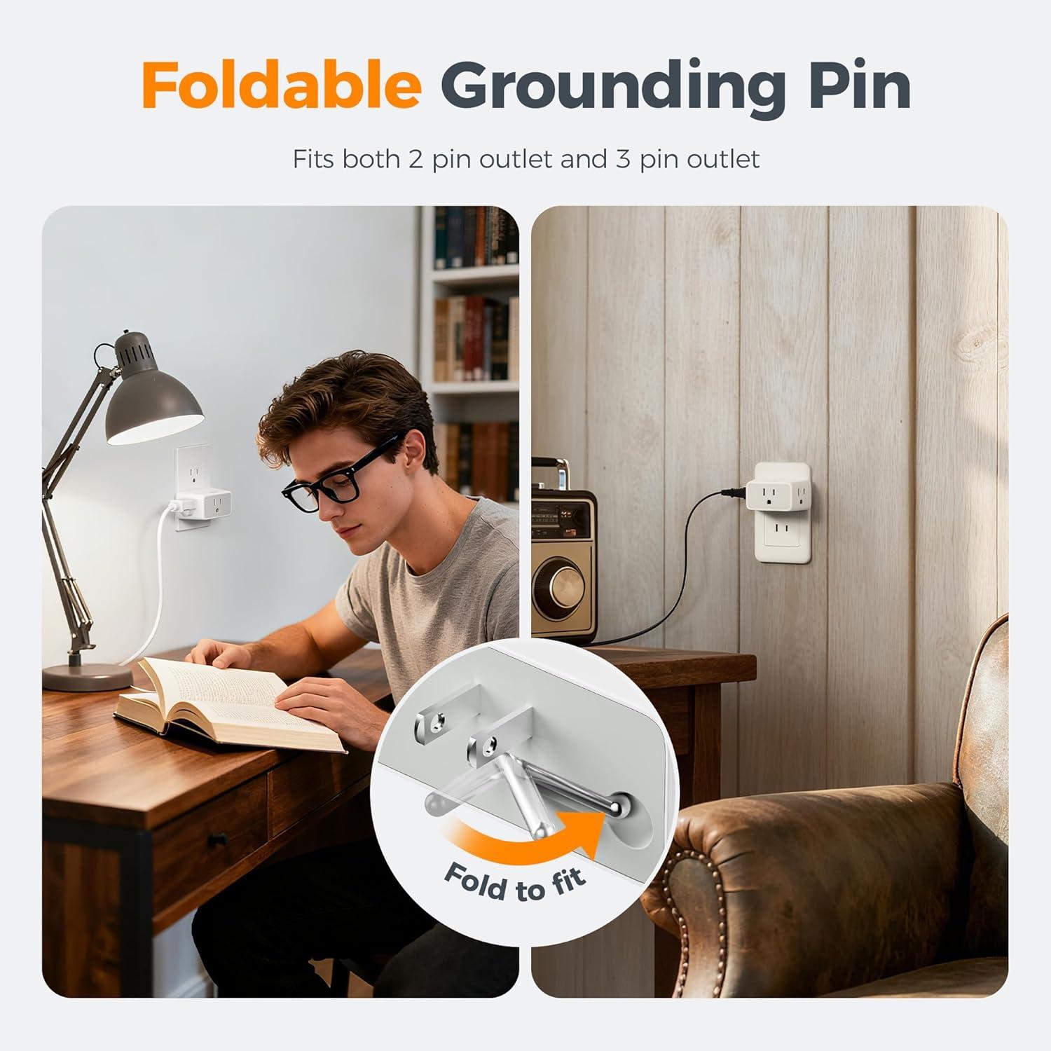 Compact and Portable: With a size of 3.07 × 2.5 × 1.41 inches and weight of 2.8 ounces, the multiplug wall outlet won't block the sockets below when plugged into the wall, suitable for indoor use in homes, offices, and dorm rooms