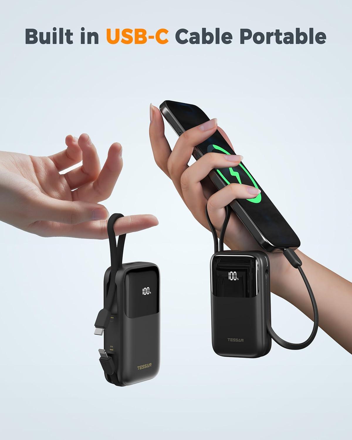 Get up to 50% off on TESSAN Portable Charger with Built in USB-C Cable 10000mAh, Power Bank Fast Charging with 20W Output Compact Battery Pack Travel Essentials for iPhone 16/15 Series, Samsung, Tablets(10000mAh) styles during our spring sale event.