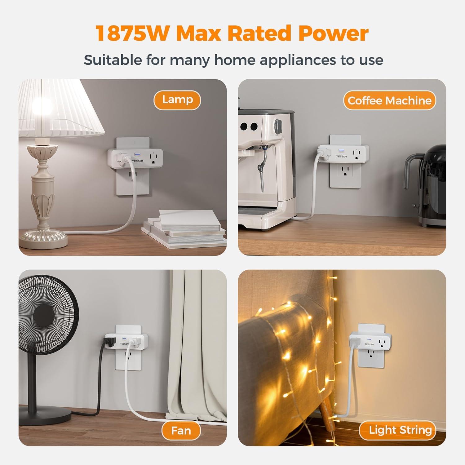 Fit for Multiple Appliances: The remote switch outlet has a rated power of 1875W and can be used for appliances like coffee makers, toasters, etc; If you want to use electrical outlet switches, please check the rated power of your devices before using