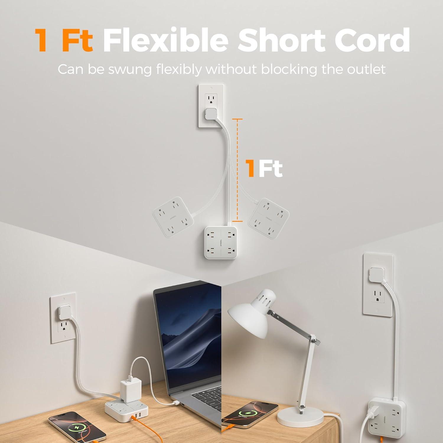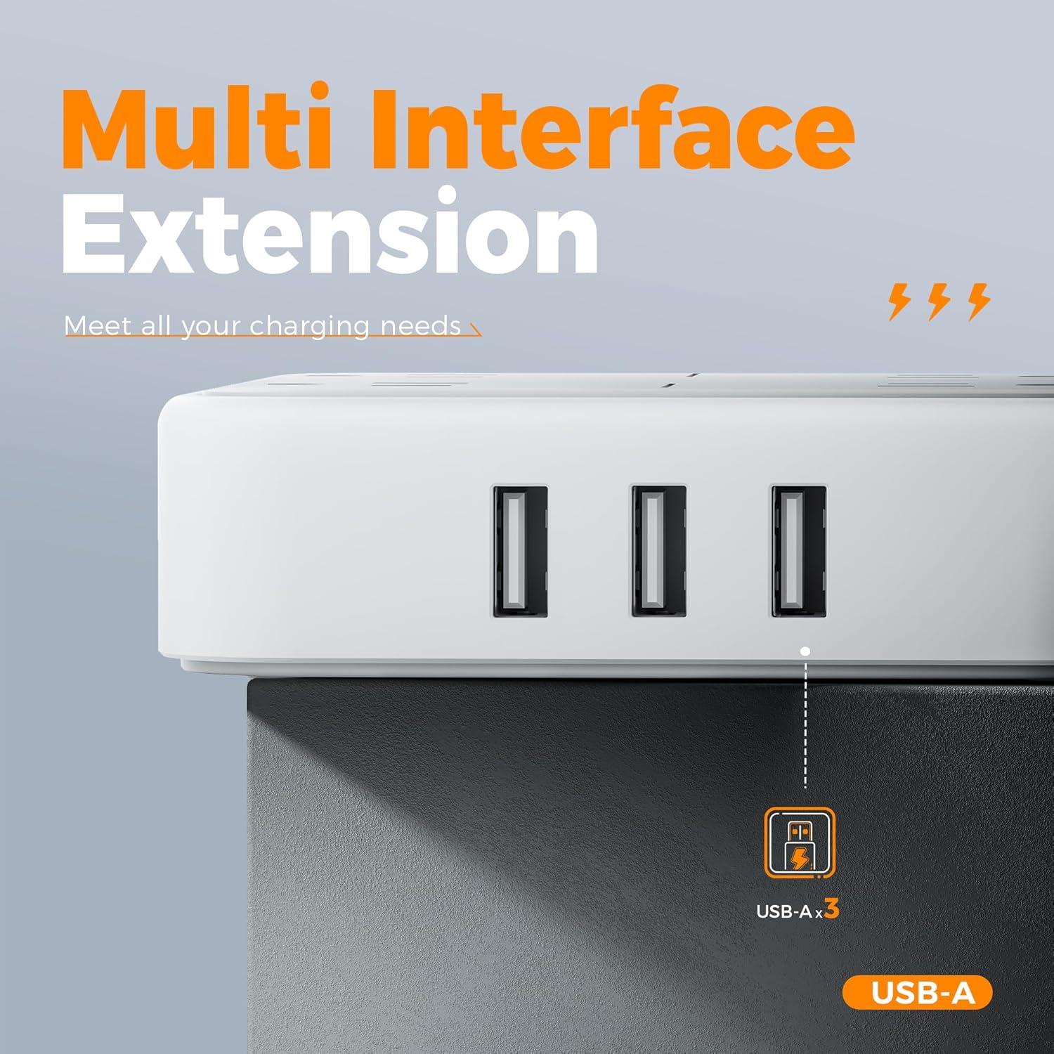 900J Surge Protector Outlet: Featuring a power strips with surge protection, overload protection, short circuit protection offers a comprehensive safeguard for electronics; The switch shuts off automatically during overloads to protect devices