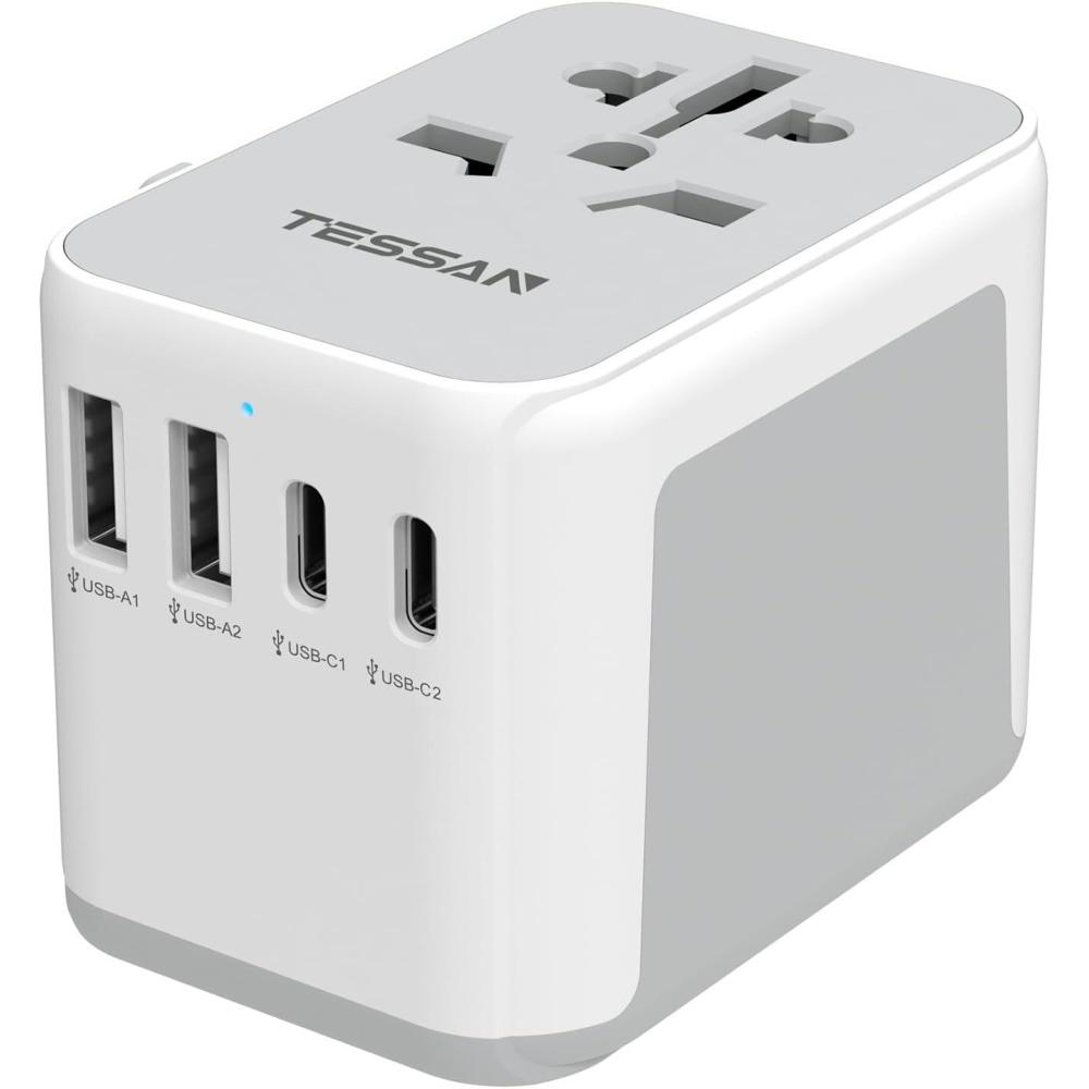 TESSAN Universal Travel Adapter, International Power Adapter with 4 USB Ports (1 USB C), Worldwide Plug Adaptor Wall Charger for USA to Europe UK France Germany Spain Ireland Australia(Type C/G/A/I)(Grey&white-20W)