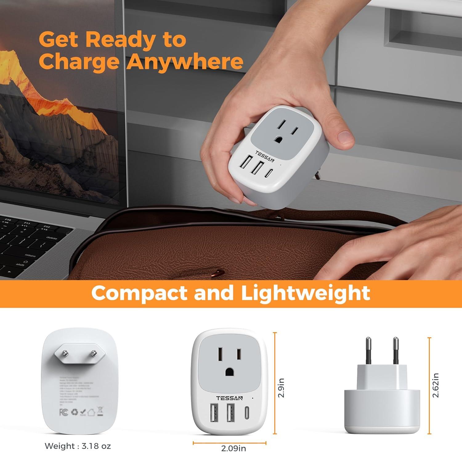 Portable and Safety: Compact size 3.33 × 2.01 × 1.24 in and lightweight 3.65 ounces; New Zealand power adapter fits easily into your bag; EU adapter with 4 sided design won't block when plug in large adapter; No surge protection, cruise ship essentials