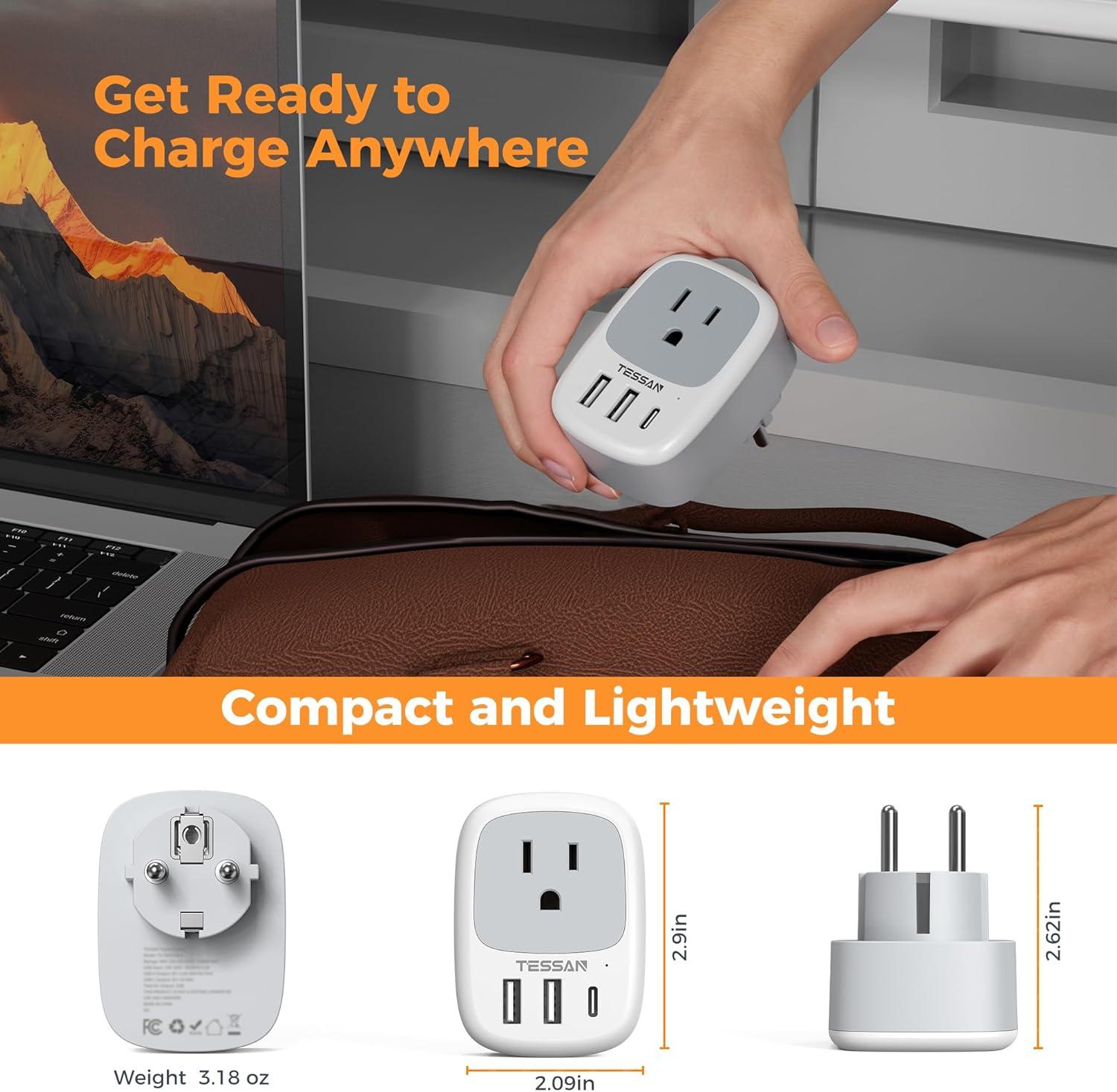 Portable and Safety: Compact size 3.33 × 2.01 × 1.24 in and lightweight 3.65 ounces; New Zealand power adapter fits easily into your bag; EU adapter with 4 sided design won't block when plug in large adapter; No surge protection, cruise ship essentials