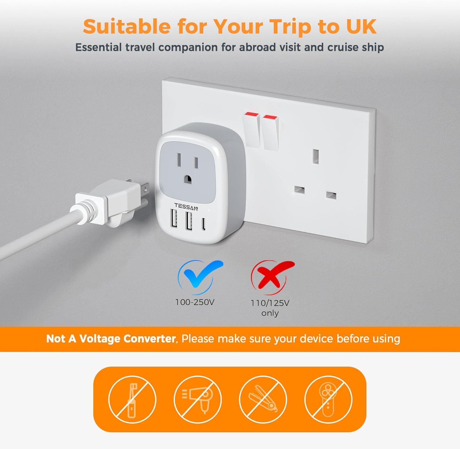 Note: The power adapters for international is not a voltage converter, make sure your device supports 100 to 250V dual voltage; If you plan to use a hair dryer, straightener, or curling iron on this travel outlet adapter, ensure they support dual voltage