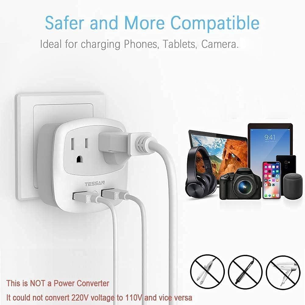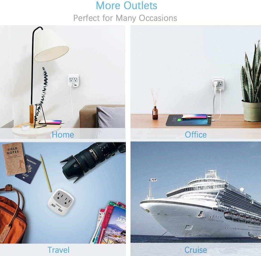 Multi Plug Outlet Extender: 1 outlet can extend to charge 4 device; 2 USB ports could detect the charging devices automatically and provide optimum fast charging speed up to 2.4A (max)for cell phone, tablet; No surge protection design, no cords, subitale for Cruise Ship Accessories