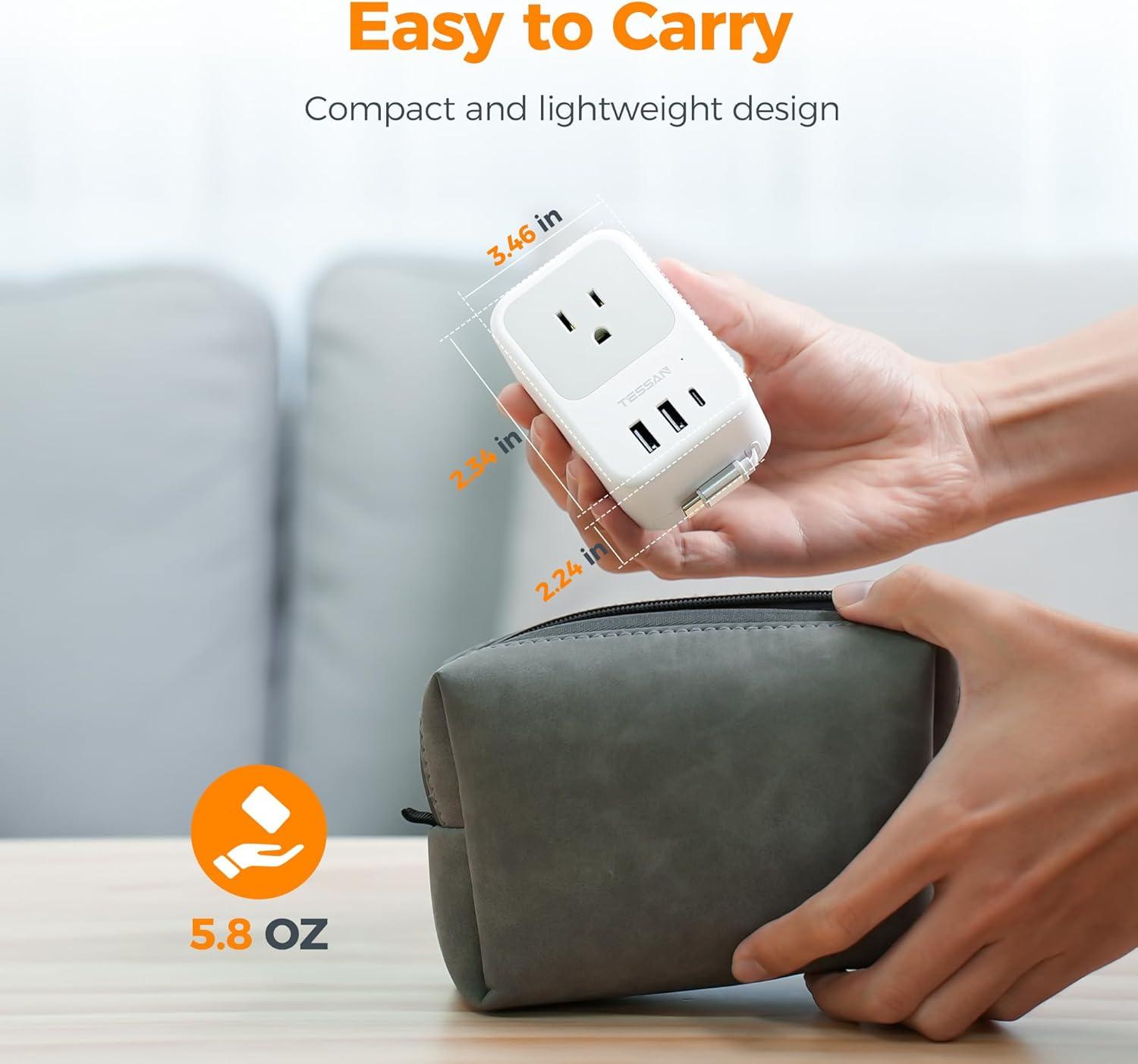 Cruise Ship Essential: This multi-plug wall outlet comes with no surge protection, making it a must-have for cruise travel; The compact TESSAN USB wall charger is designed to fit effortlessly into your luggage or backpack, offering ultimate portability