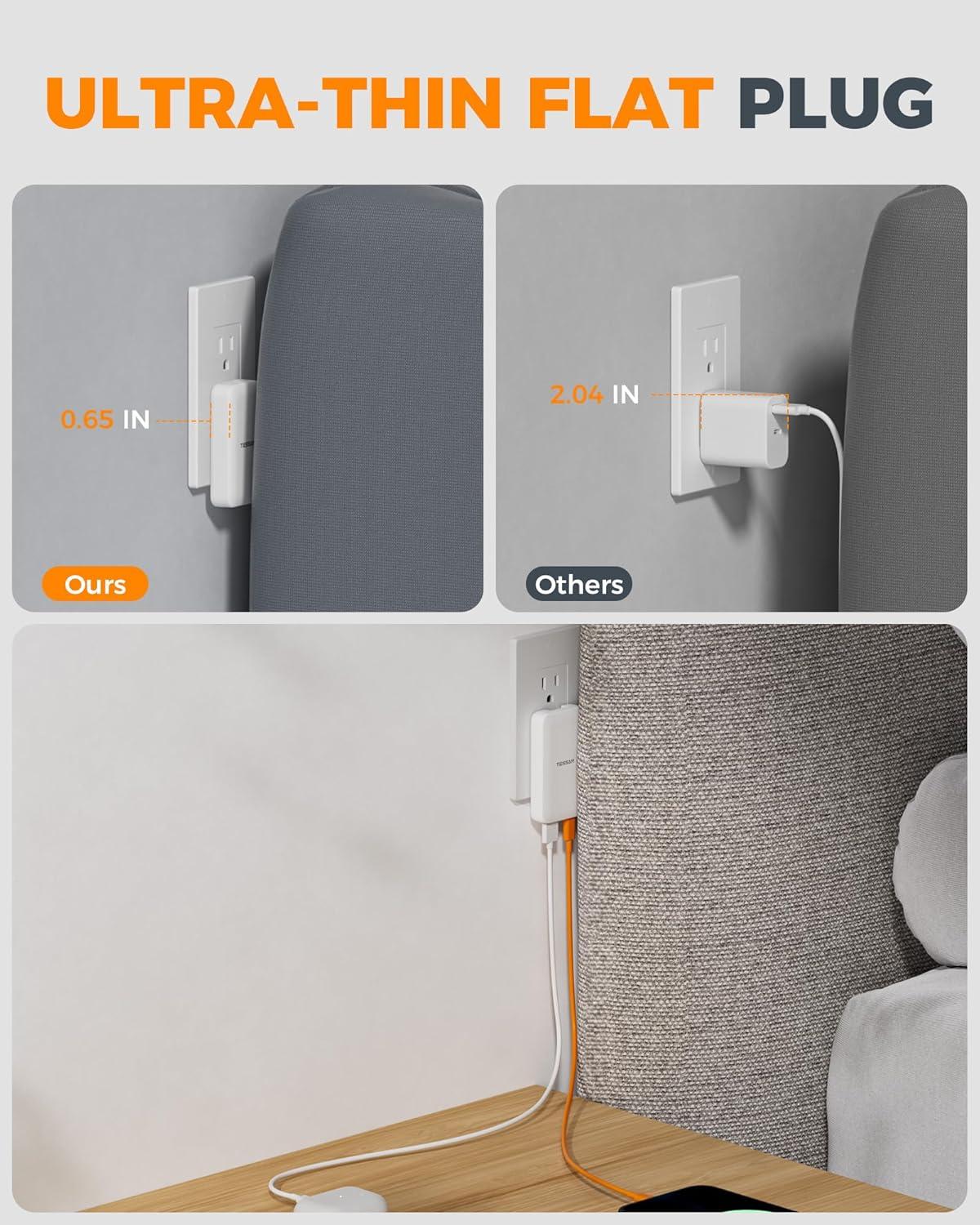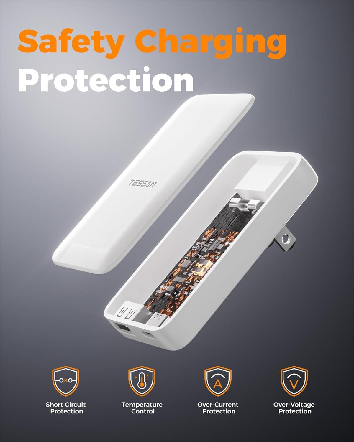 imageUSB C Flat Wall Charger Block TESSAN Ultra Slim MultiPort Power Adapter for iPhone 1615 Series and Samsung Galaxy Models PD 35W Fast Charging Foldable Outlet Plug2 USBC PD35W