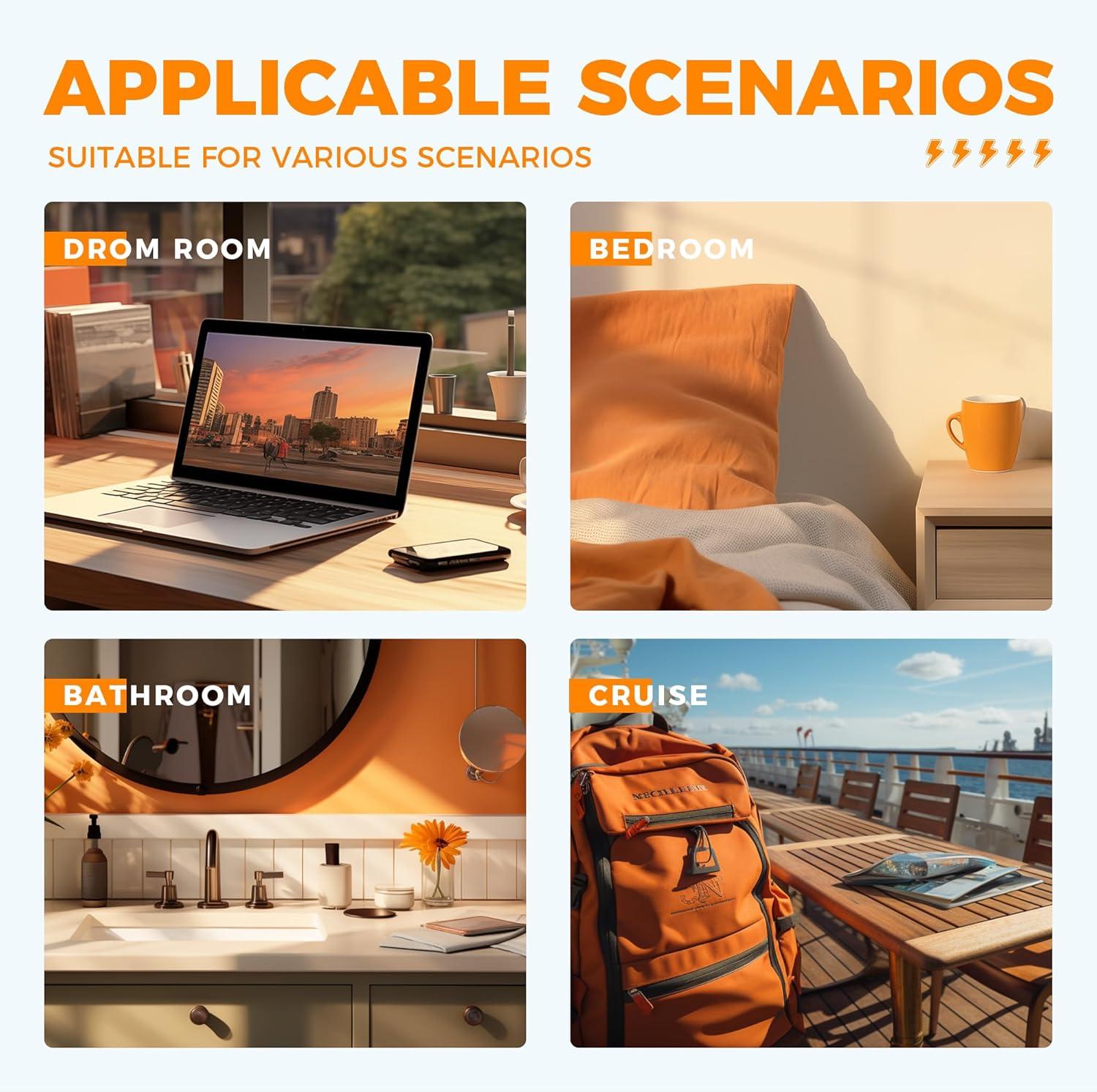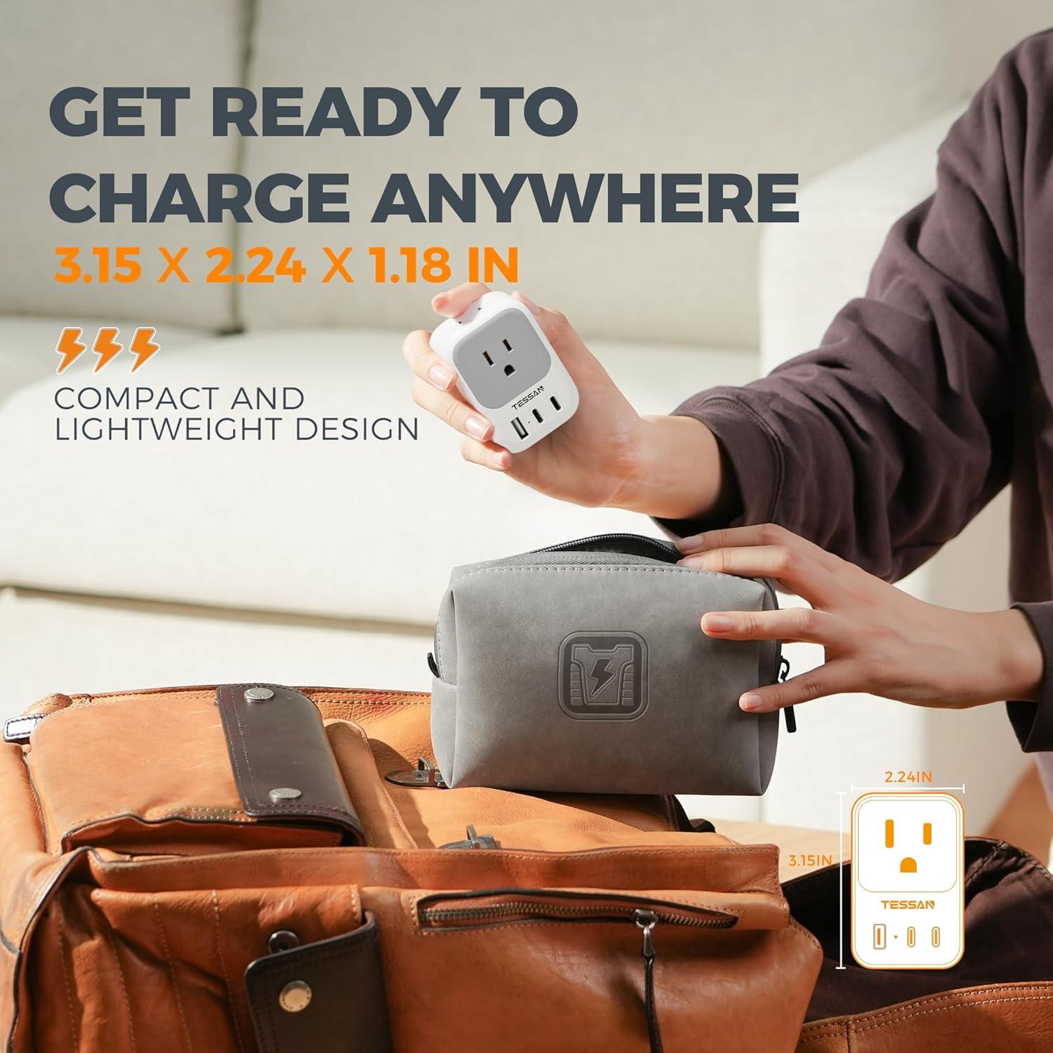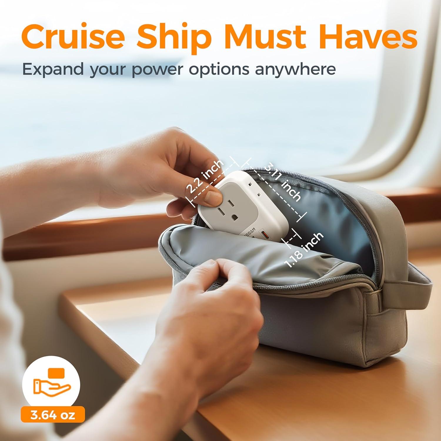 Compact Size for Travel: Lightweight design, palm-size design outlet with USB ports can easily fit your suitcase, backpack and handbag, ideal for your travel and business trip; No surge protection, no cords, making it fully cruise ship approved
