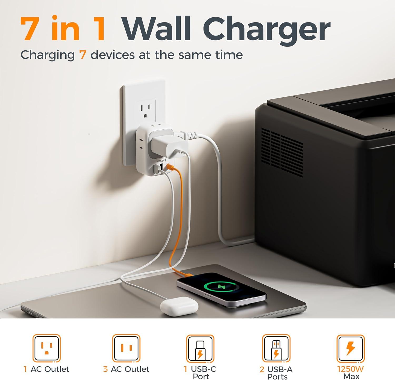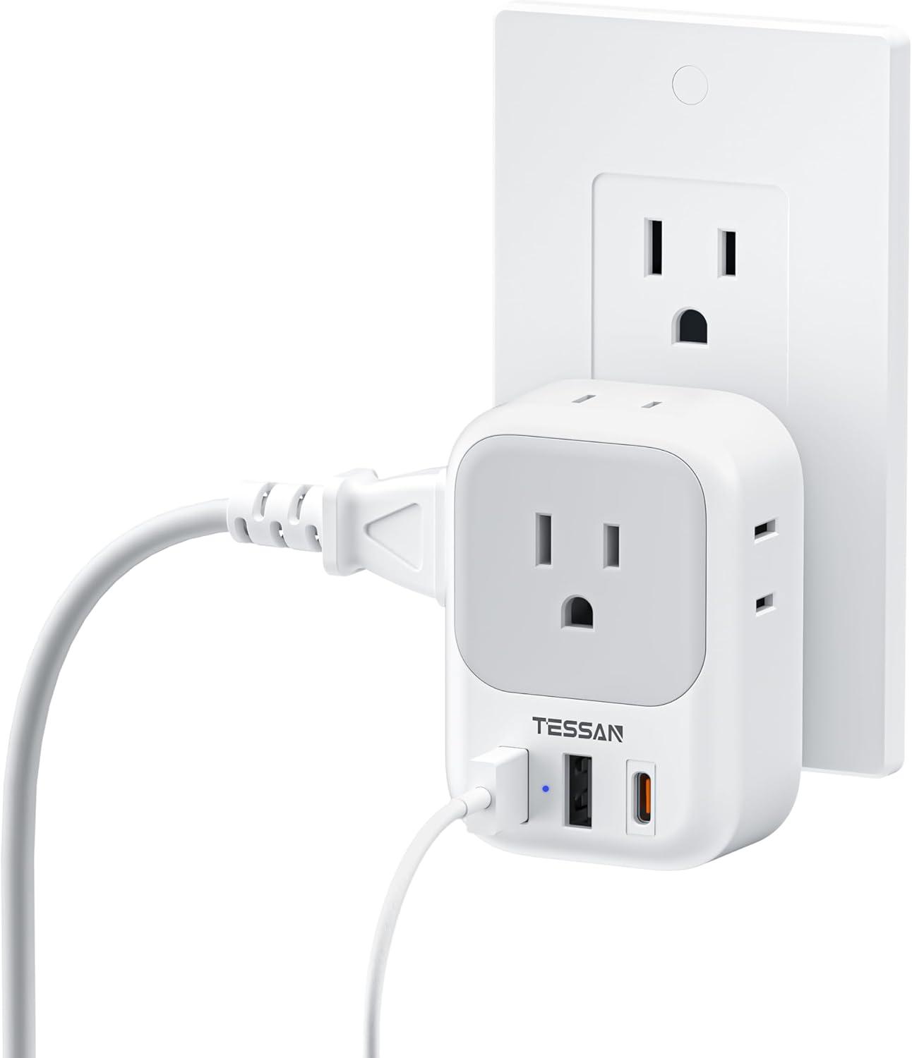 7 in 1 Multi Plug Outlet: This wall plug extender could turn 1 socket into 4 AC outlets and 3 USB ports, accept the standard N American 2 or 3 prong flat pin plug, can charge 7 devices simultaneously; You can use the usb plug in any indoor place such as home, office and dorm room