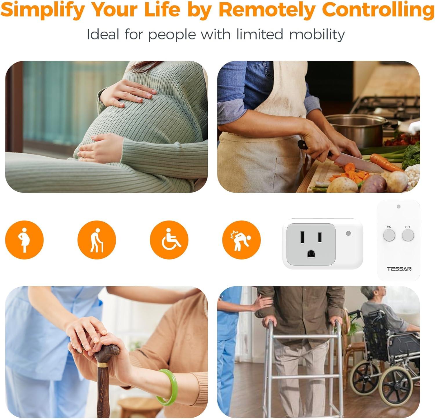 Portable and Space-saving Design: The remote light switch enjoys compact size; Each outlet switch only takes up 1 wall socket without blocking the other socket; Help you use as many outlets as possible in a limited space